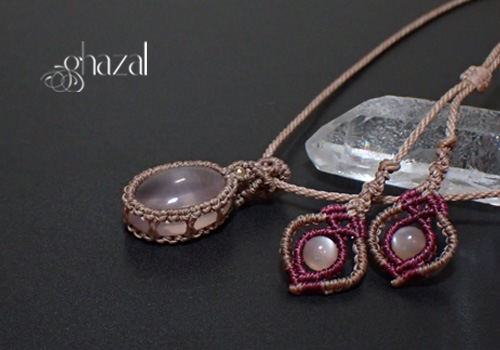 お好きな天然石ルースと紐の色をお選び頂き、ダブルフレームペンダントを制作します。
