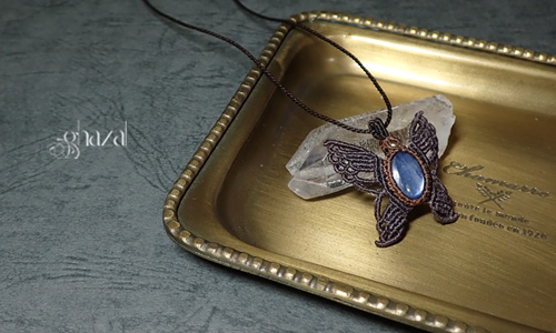 この講座では、お好きな天然石ルースと紐の色をお選び頂き、バタフライ(蝶)をモチーフにしたペンダントトップを制作します。